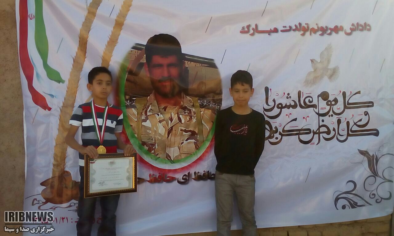 قهرمان مسابقات سنگ نوردی جام ولایت شهدای مدافع حرم، نشان طلای خود را به فرزند شهید مدافع حرم مرتضی زرهرن تقدیم کرد