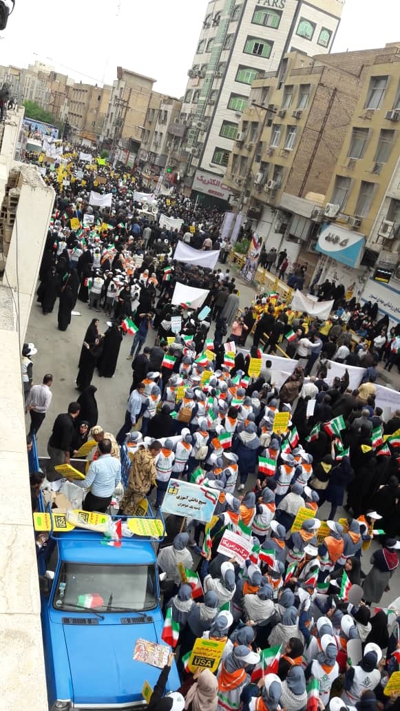 به گزارش خبرگزاری صدا و سیما مرکز خوزستان ، در تظاهرات ضد استکباری یوم الله 13 آبان دانش آموزان و دانشجویان در کنار هم سیاست های استکباری آمریکا علیه ملت ایران را محکوم کردند. حماسه سازان جوان کشورمان امروز با سردادن شعارهای مرگ بر آمریکا و مرگ بر اسرائیل ، حضوری پر شور در حماسه یوم الله 13 آبان داشتند.