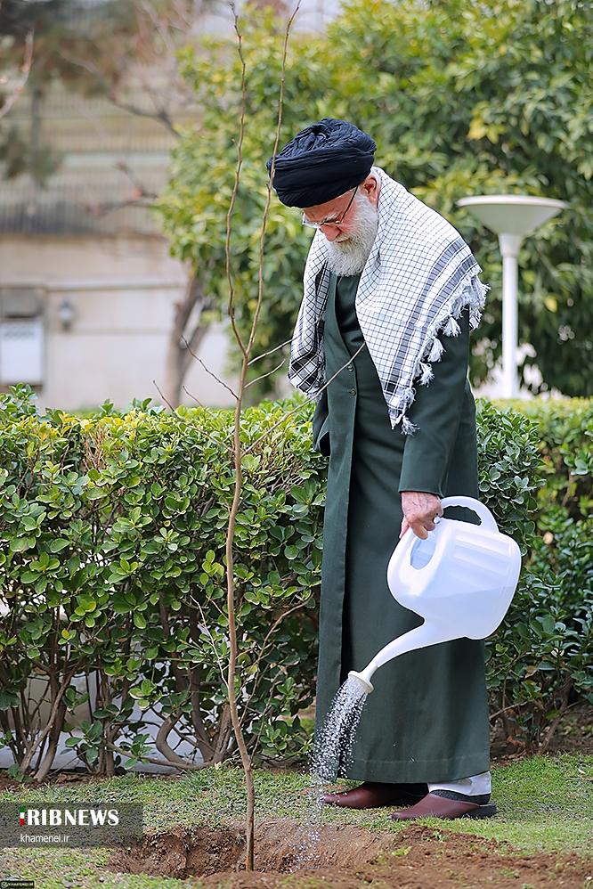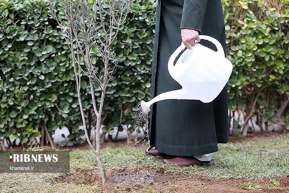 کاشت نهال در روز درختکاری به دست رهبر معظم انقلاب