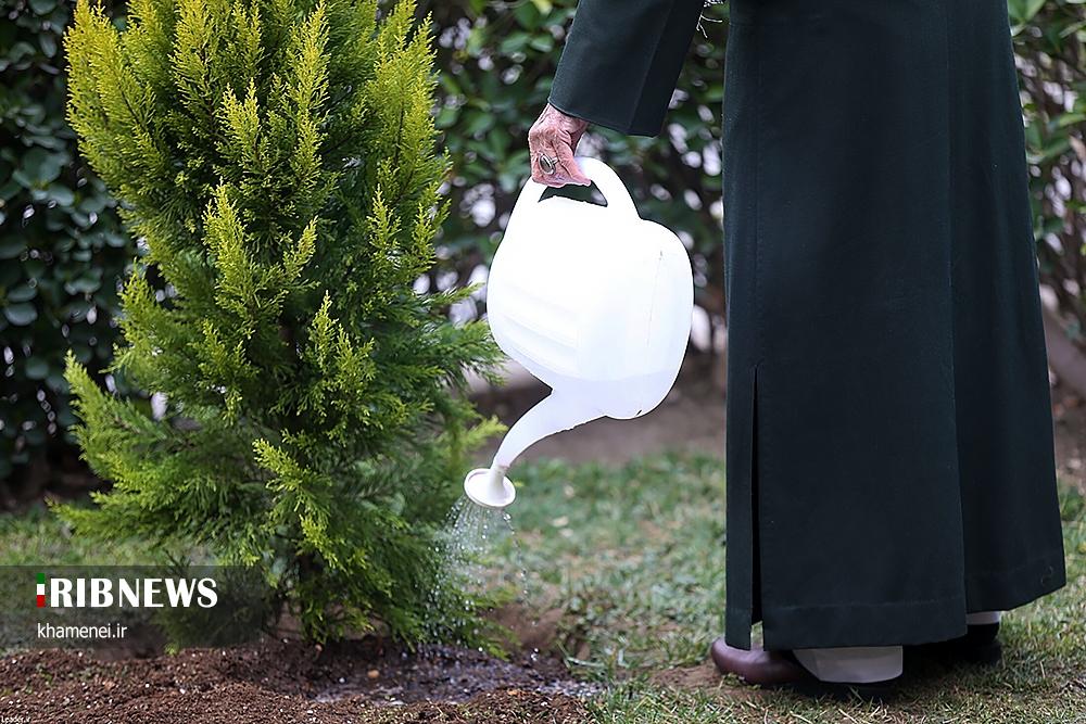 کاشت نهال توسط رهبر انقلاب اسلامی در روز درختکاری