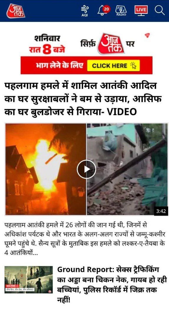 -ویران کردن خانه‌های دو تروریست مظنون وابسته به لشکر طیبه که در حمله پاهالگام نقش داشتند