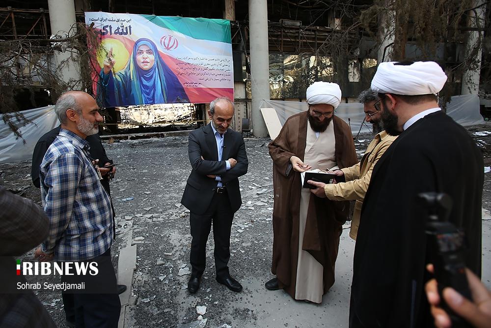 صبح امروز ۶ مرداد ماه ۱۴۰۴ رئیس ستاد برگزاری نماز جمعه تهران و شورای سیاستگذاری ائمه جمعه کشور، حجتالاسلام والمسلمین محمد جواد حاجعلیاکبری و برخی از طلاب و روحانیون با حضور، رئیس رسانه ملی، دکتر جبلی، از ساختمان شیشهای صدا و سیما، بازدید کردند و حمله رژیم صهیونیستی به این مرکز رسانهای ملی را، که هنگام پخش زنده اخبار انجام شد، به عنوان یک جنایت جنگی آشکار، محکوم کردند.