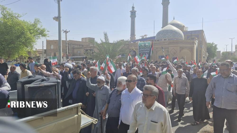 راهپیمایان، پس از اقامه نماز عبادی - سیاسی جمعه همگام با دیگر مردم در شهر‌های مختلف استان از جمله آبادان با سر دادن شعارهای ضد صهیونیستی بر پیروزی مردم فلسطین و حماس تاکید کردند.